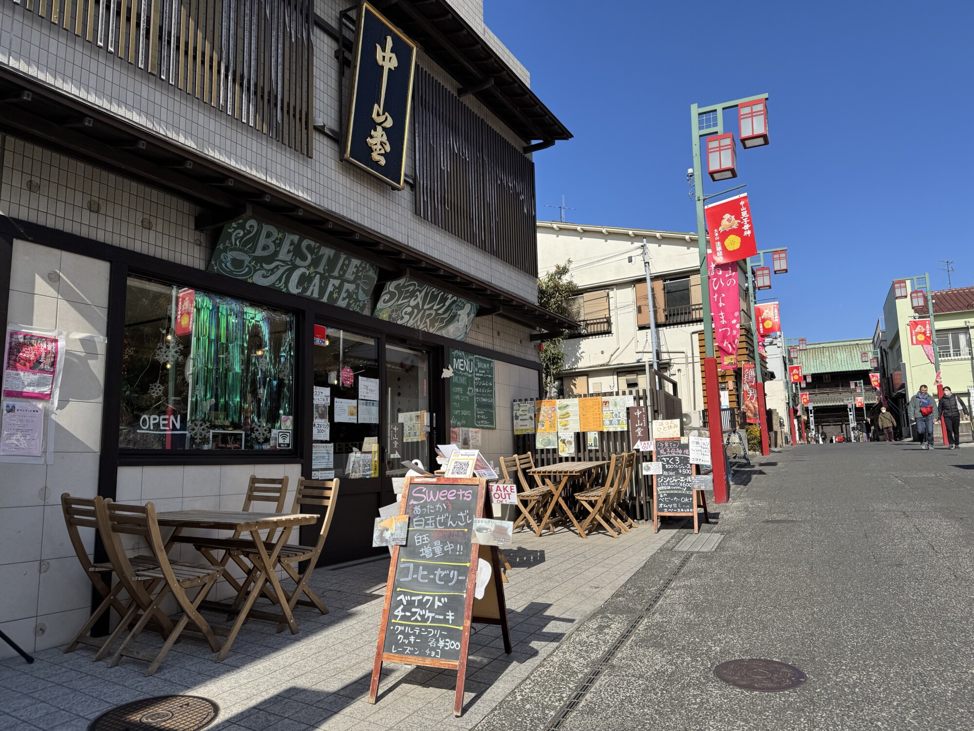 京成中山駅から参道を歩いてすぐ、中腹にベスティカフェがあります。