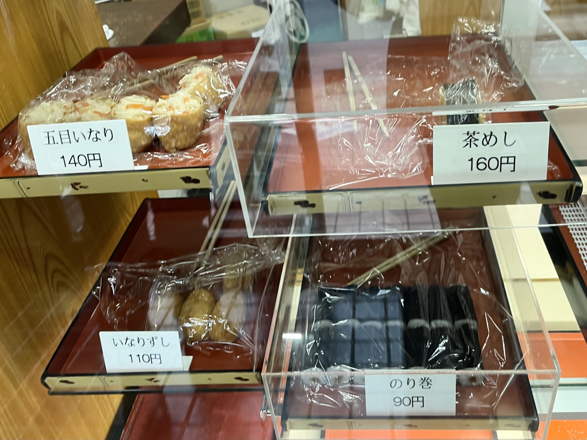 ご飯ものには「いなり寿司」や「茶めし」、「赤飯」、「五目ご飯」などもあり、甘いものからしょっぱいものまで揃う、豊富なラインナップも魅力です。
