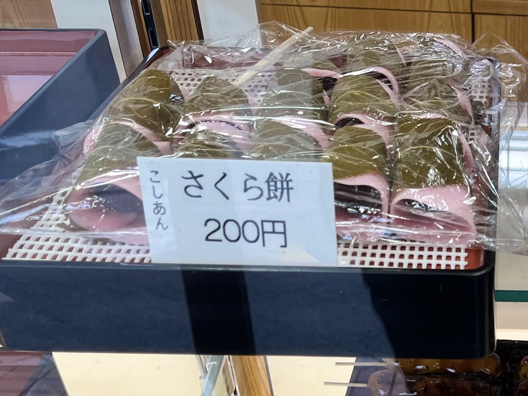 うすピンク色が可愛らしい**「さくら餅」**は、1つ200円で購入できます 。手のひらサイズで、おやつにちょうど良い大きさなのも嬉しいポイントです