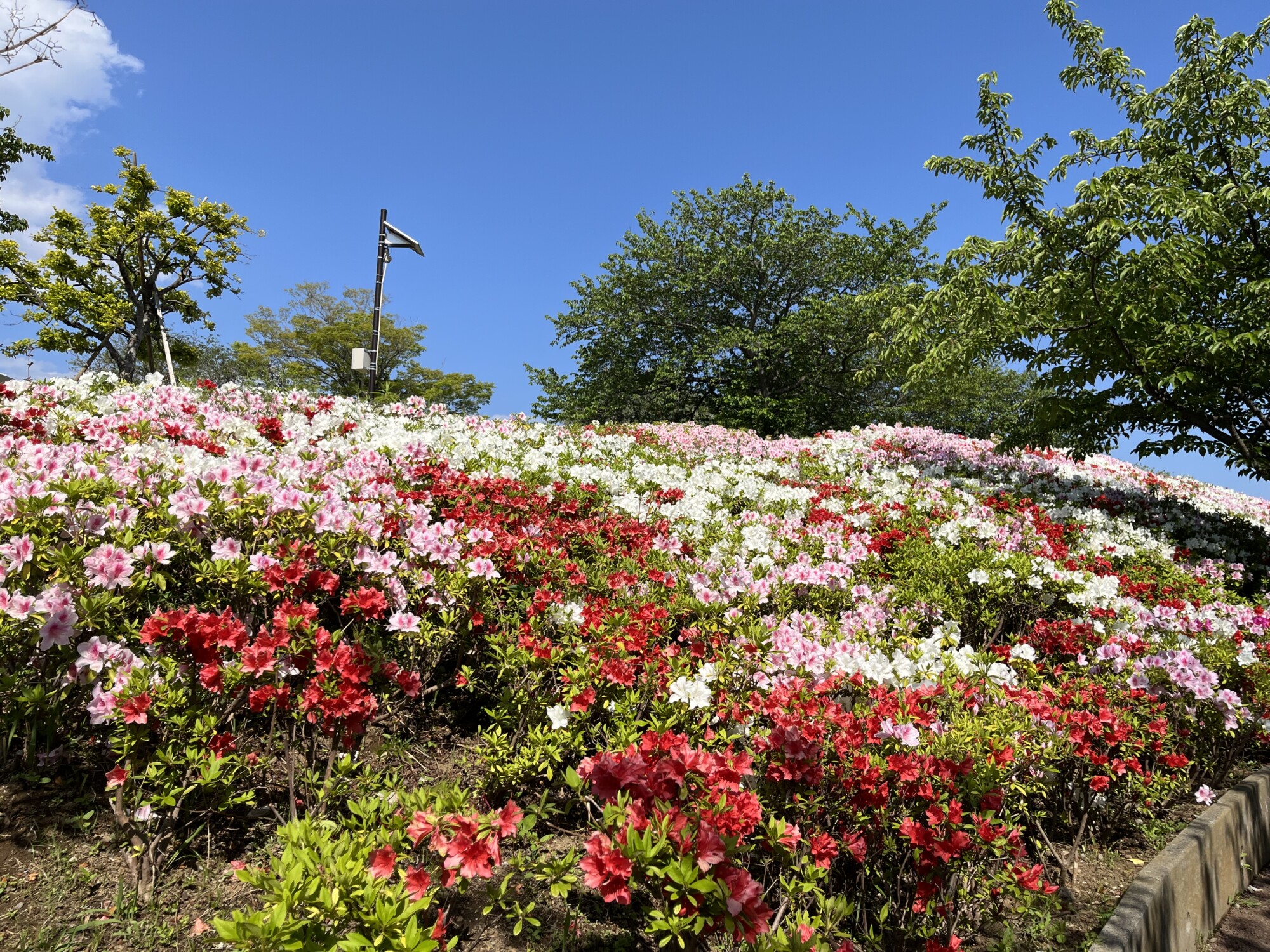 初夏には、ツツジが咲き誇る「ツツジ山」で、色とりどりの景色を楽しむことができます。