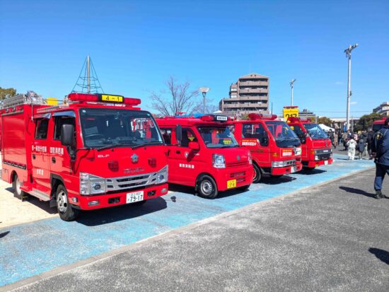 会場に到着すると、普段なかなか近くで見ることができない消防車がずらりと並び、思わず大人もテンションアップ!