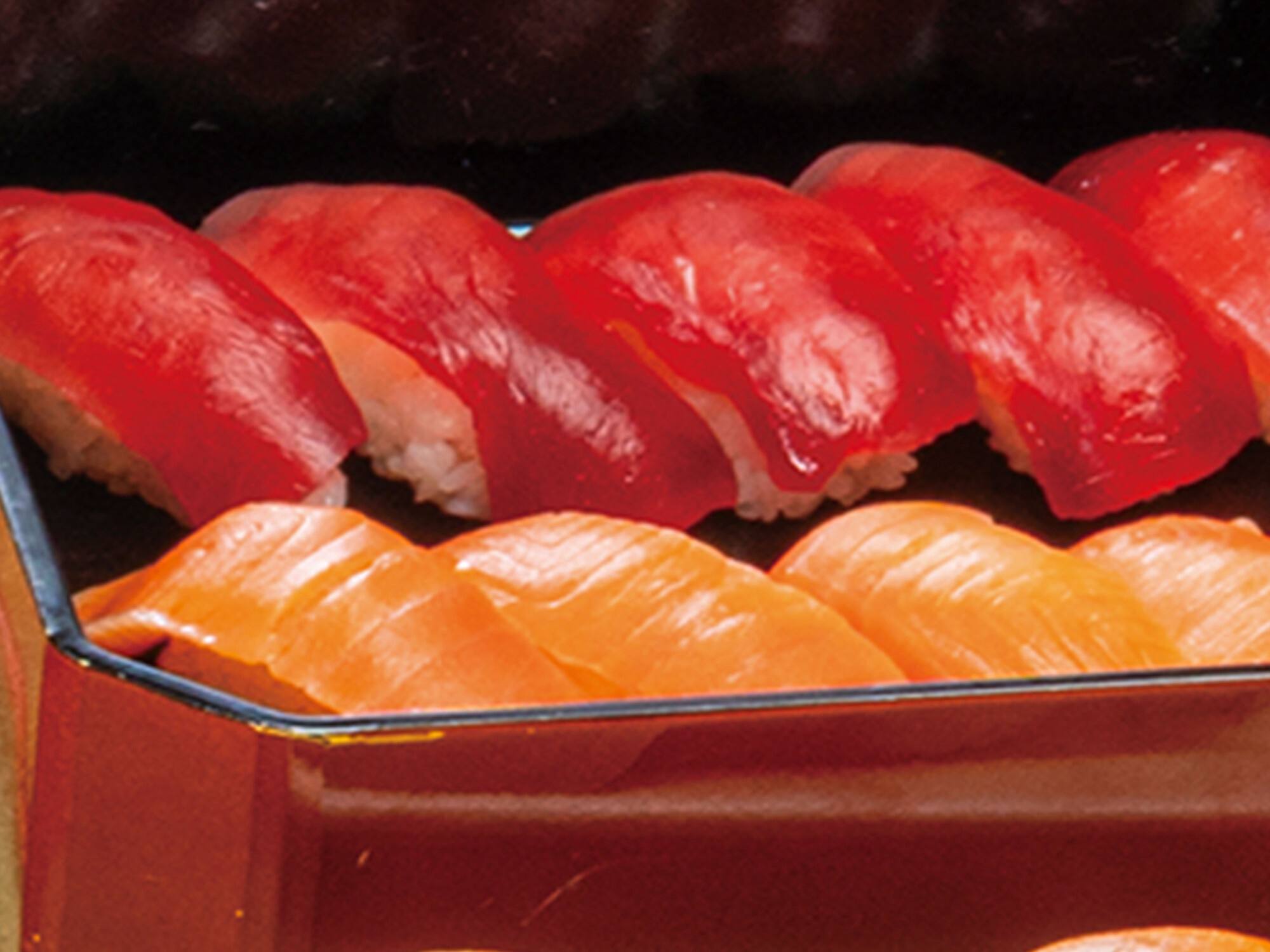 鮪やサーモンなどの握り寿司もビュッフェで。ステーキの合間にさっぱり楽しめる人気メニューです。