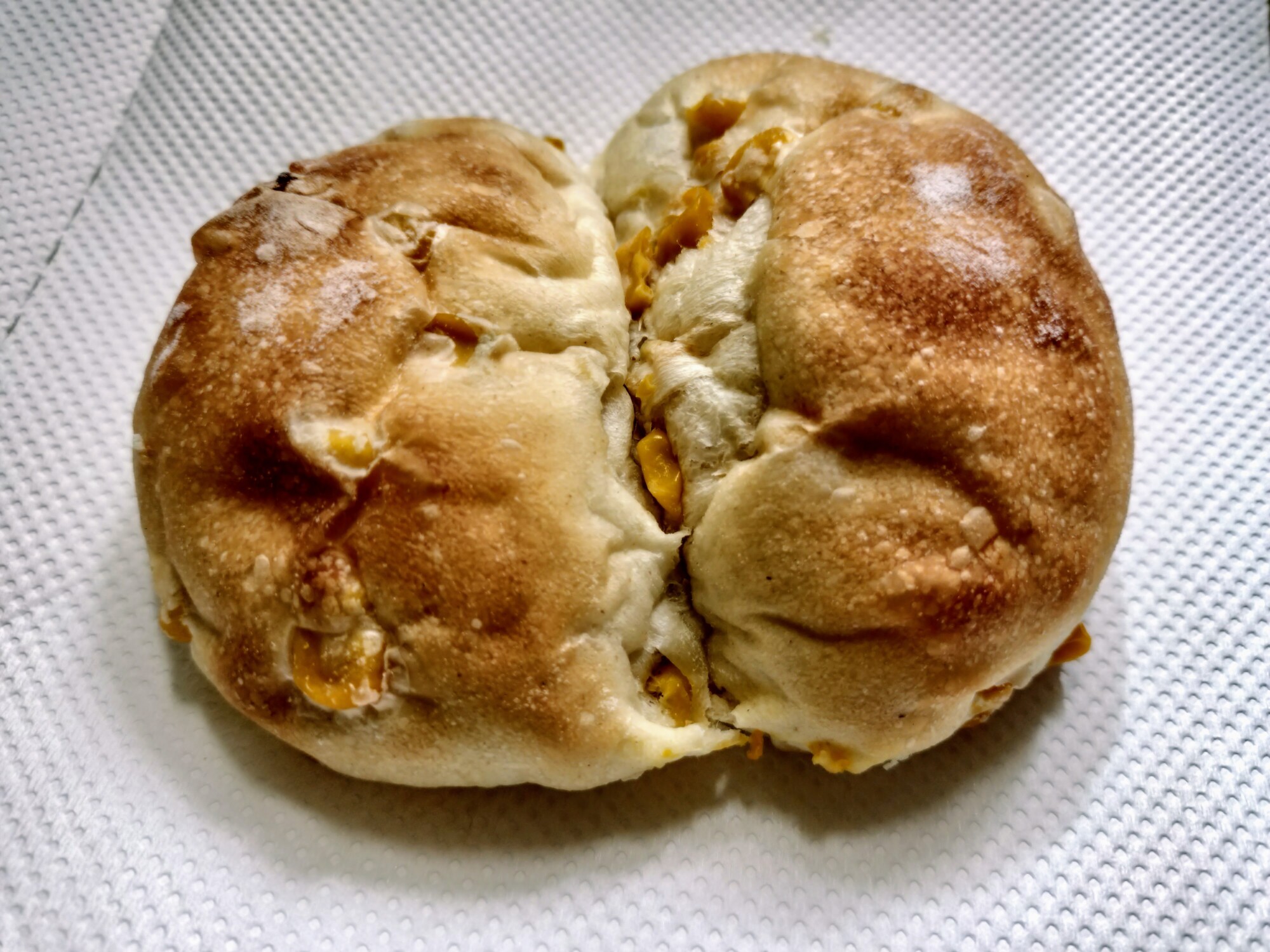 続いて、「十勝コーンパン」(280円)。国産小麦100%のもっちりした食感の食パン生地に、たっぷり入ったコーンの甘みが最高のバランス。食事パンとしてスープと共にいただいても、おやつとしても楽しめます。素朴な味だからこそ、いろんなシーンで活躍しそう。