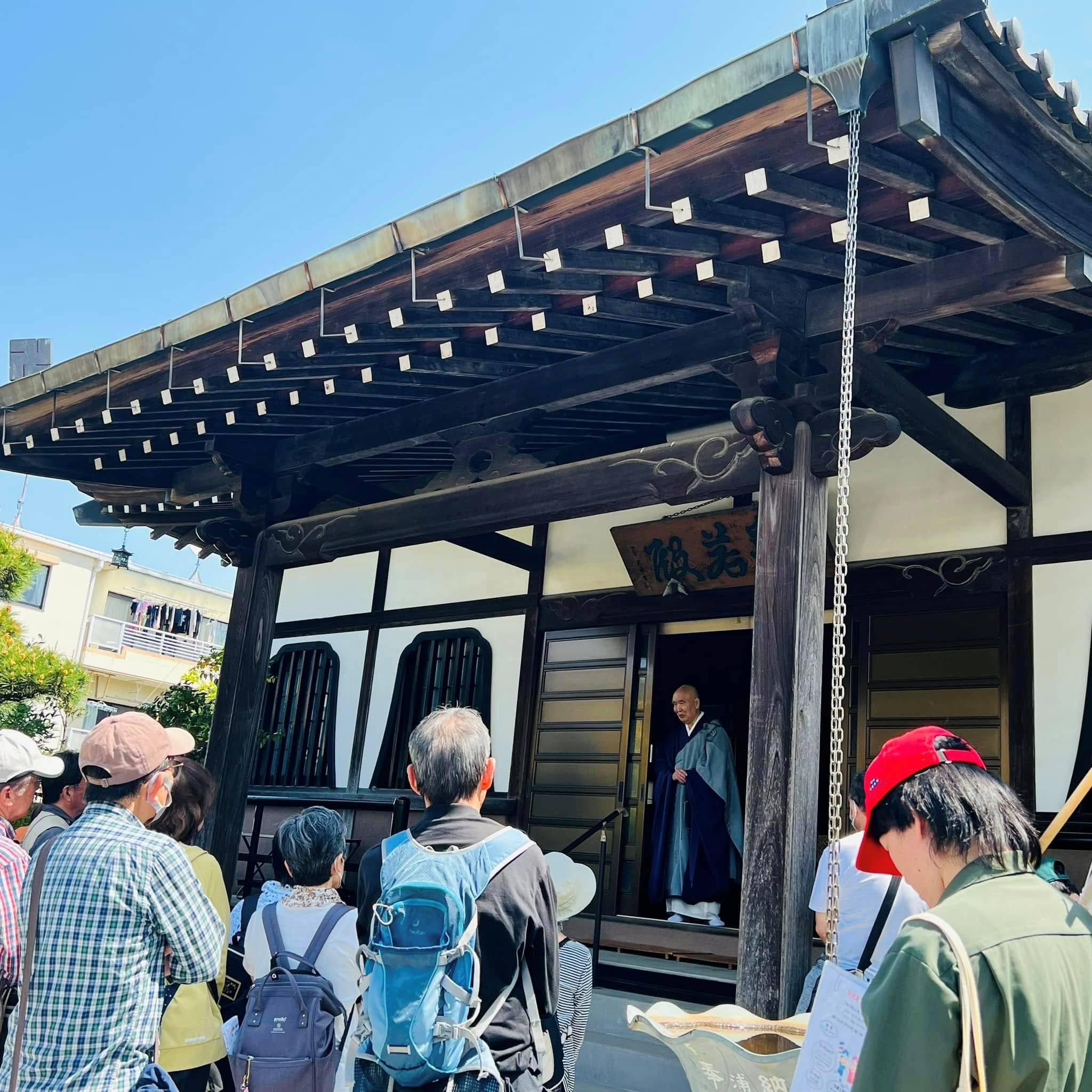 初日の4月12日(日)は、宮本武蔵ゆかりの寺である一番札所・徳願寺から、勝海舟の歌碑を有する自性院、芭蕉の句碑がある法善寺を経由して、21番札所・光林寺まで12寺を歩いて回る。2日目は法伝寺を皮切りに、五智如来像の善照寺や、六地蔵の源心寺など行徳・南行徳の7寺と、浦安4寺を経て、33番札所・大蓮寺まで。そして3日目は、原木の4つの寺を回り、番外の藤原観音堂まで足を延ばす。いずれも同会のメンバーが一緒に巡礼する。
