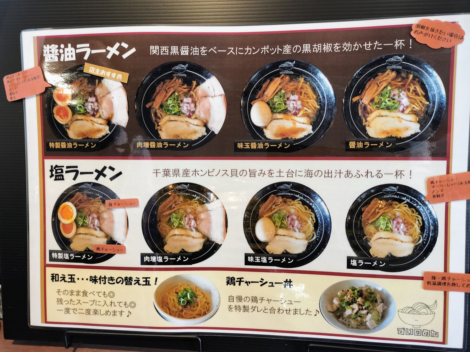 「瑞乃麺」のメインメニューは、大きく分けて醤油ラーメンと塩ラーメンの2系統です。