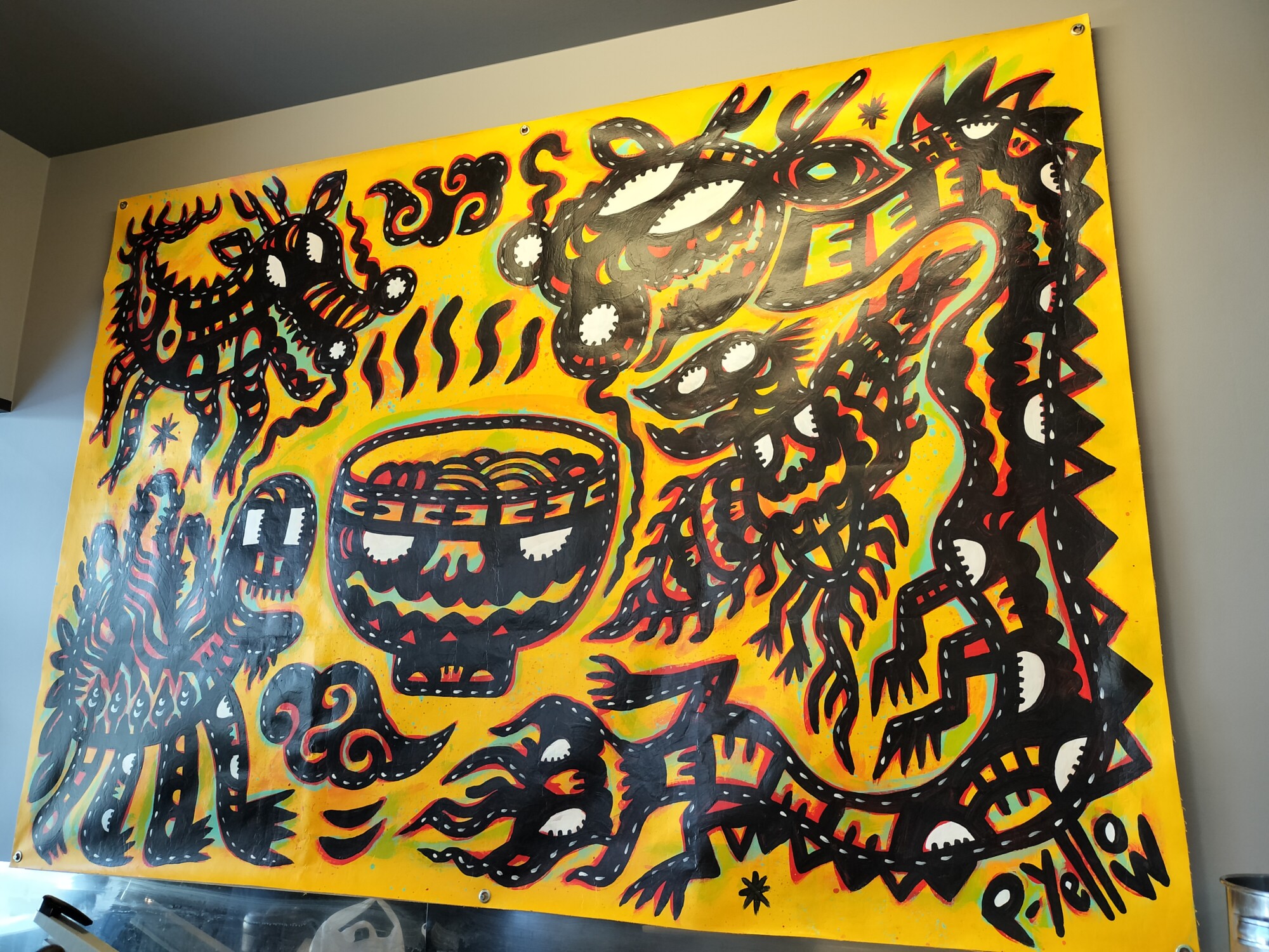 「瑞乃麺」の店名にある「瑞」の字は吉兆を表す字。ラーメンを食べた人に幸運が訪れるようにという願いが店名に込められているそう。店内にはこの「瑞」の字にちなんで、中国の四大瑞獣をモチーフにした絵が飾られています。