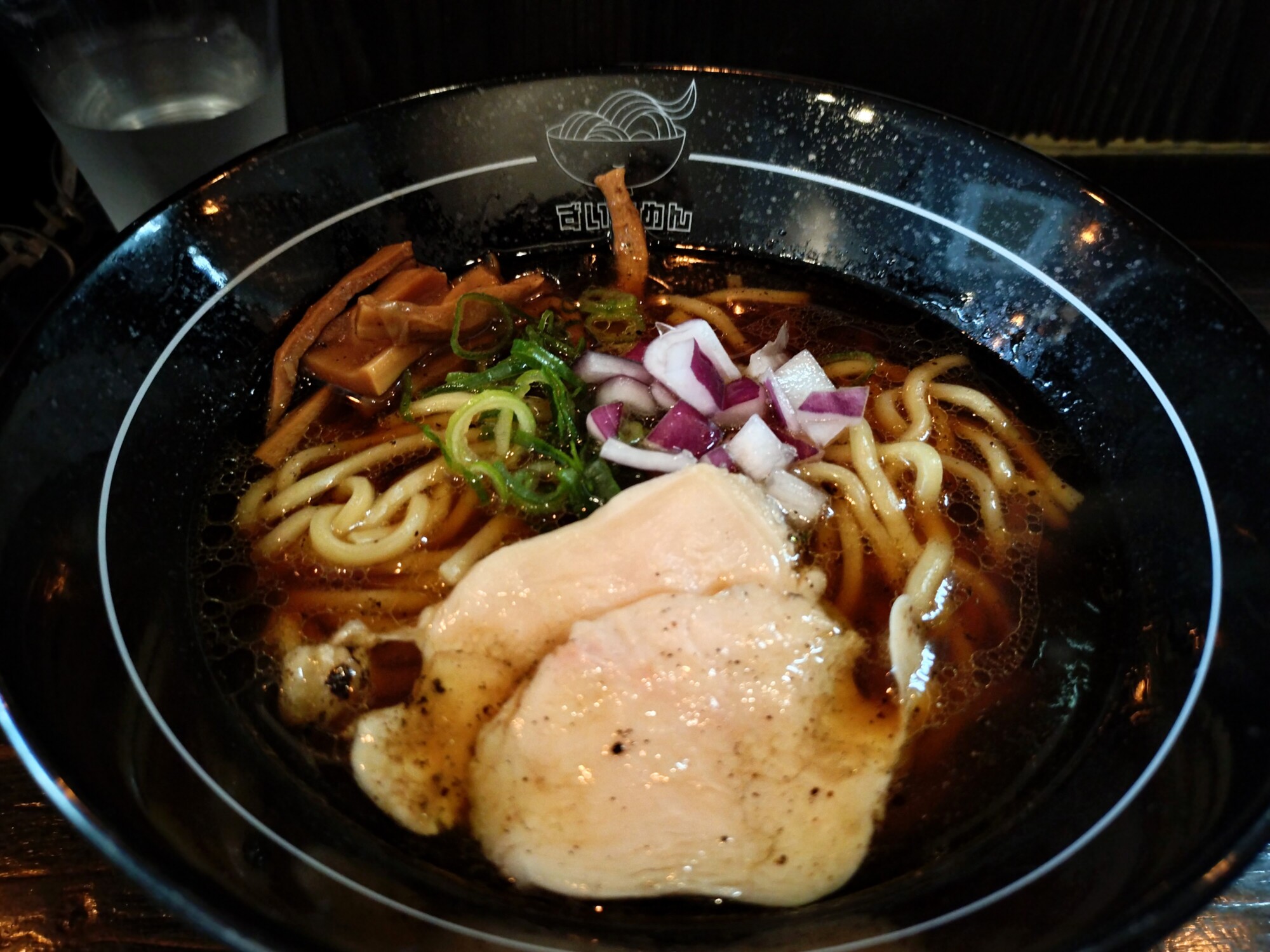 低温調理を施した鶏チャーシューはとてもジューシーで柔らか!ちょうどいい厚みで食べやすく、とても美味しくいただきました。赤玉ねぎの甘みとシャキシャキした食感がいいアクセントでした。