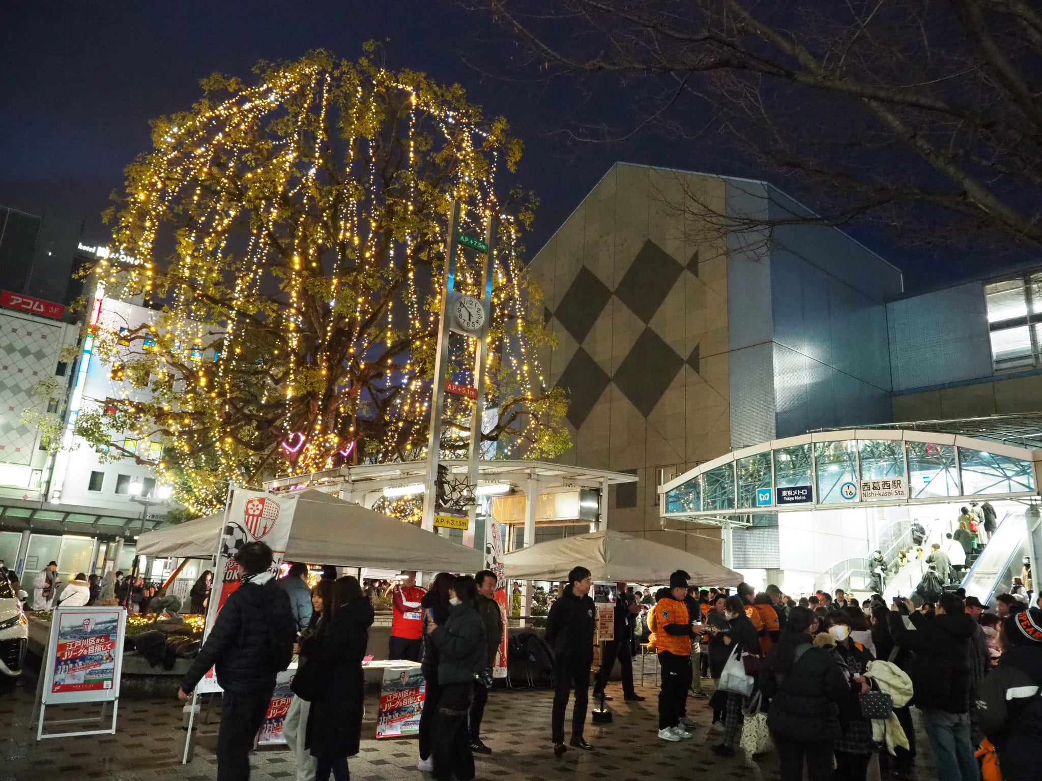 イルミネーションは3月16日(月)まで続けられ、西葛西駅前を明るく照らしていた。