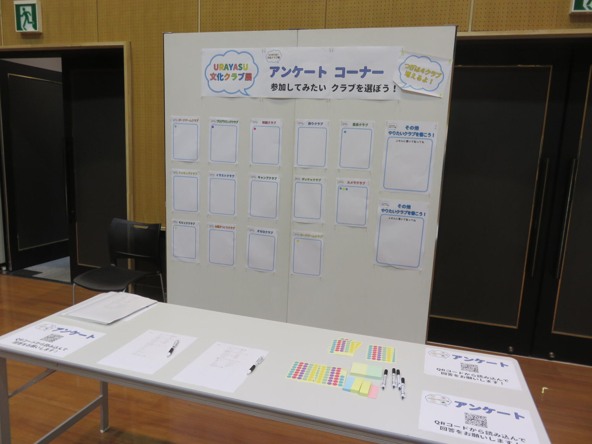 参加してみたいクラブにシール投票するアンケートコーナーも。次は4クラブ増える予定