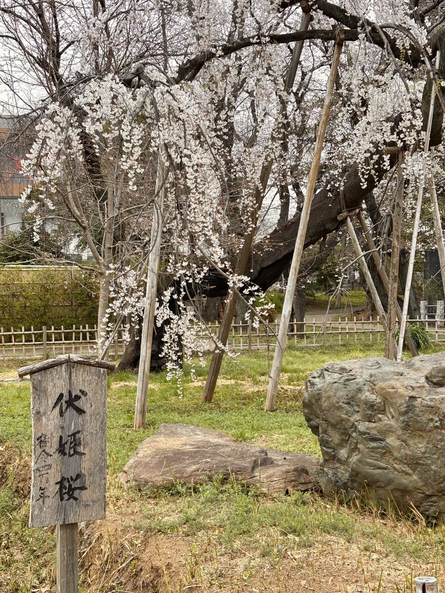 長い年月を経て、現在は幹の半分が枯れた姿となっている伏姫桜 。しかし、それでも春が来れば、やわらかな花を懸命に咲かせています 。