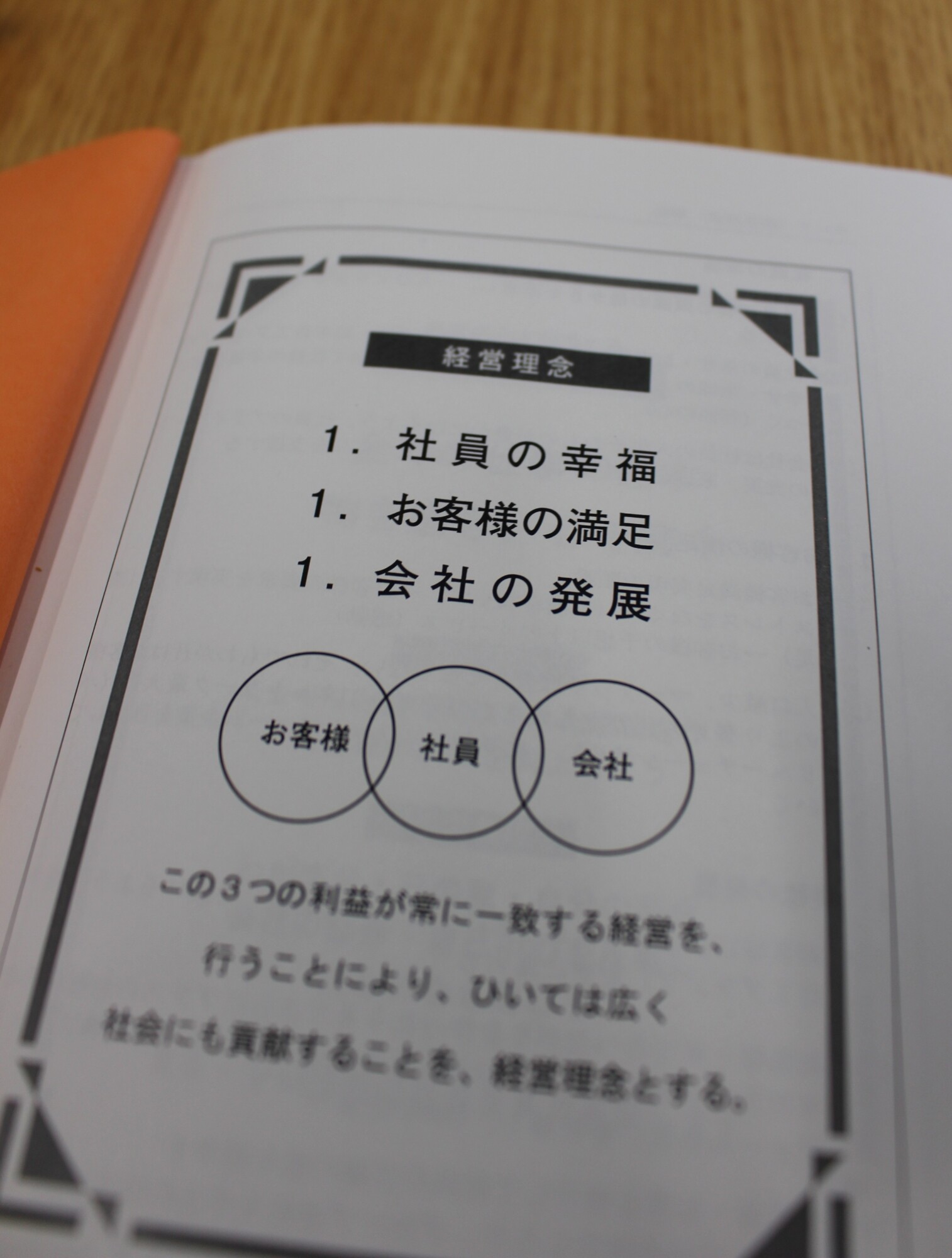 基本方針で父が「1お客様の満足 2 社員の幸福 3 会社の発展」としていたところを、あえて私は「社員の幸福」を第一に置きました。社員を大事にする会社であることを強調したかったのです。まずは社員自身の幸福追求、それがお客さまの満足につながり、会社自体もさらに発展する、その上昇サイクルの継続を目指しています。