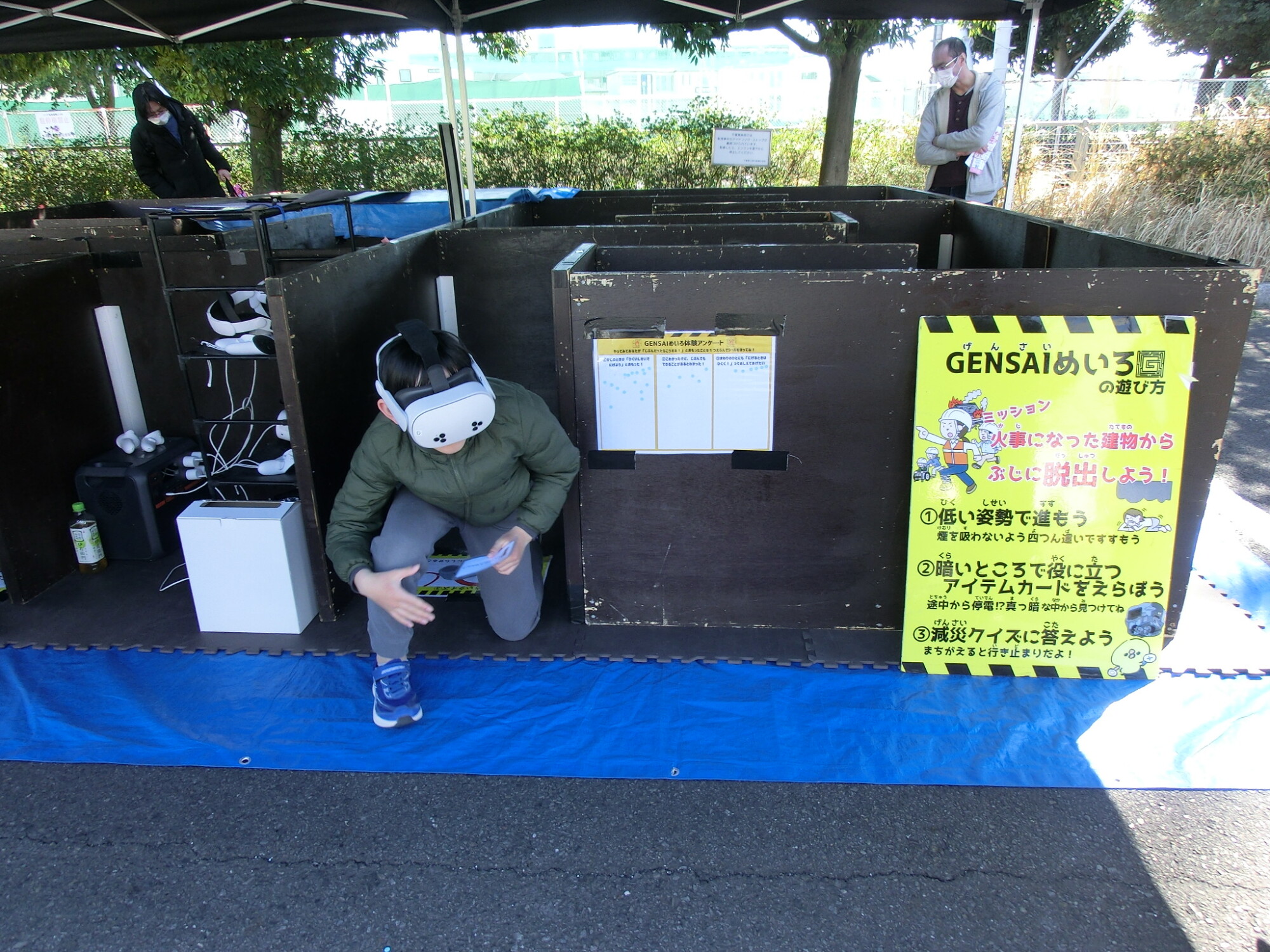 会場は、地元企業の紹介や技術展示をするテクノモール、体験型イベントが揃ったプレイモール、キッチンカーやテントで地場産品の販売を行うショッピングモールにエリアが分かれ、どこも開場と同時に多くの人が訪れ大盛況。中でもプレイモールにはたくさんの親子連れが足を運び、展示されているパトカーや白バイ、トラック、バス、タクシーなどに試乗したりクイズを解いたりして楽しんでいた。VRゴーグルを着けて火災からの避難を体験する「GENSAIめいろ」に参加した子は「煙など思った以上にリアルだった。逃げ方がよくわかってよかった」と感想を述べ、起震車体験を見学していた人からは「わが家も家具の固定を確認しないとね」といった声が聞かれた。