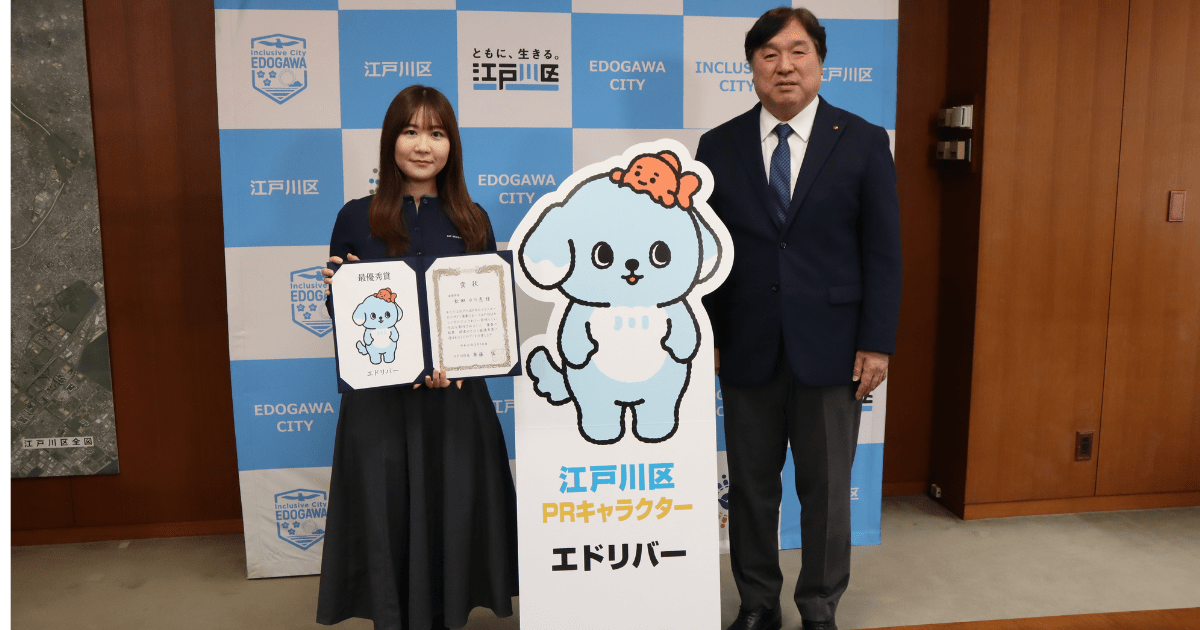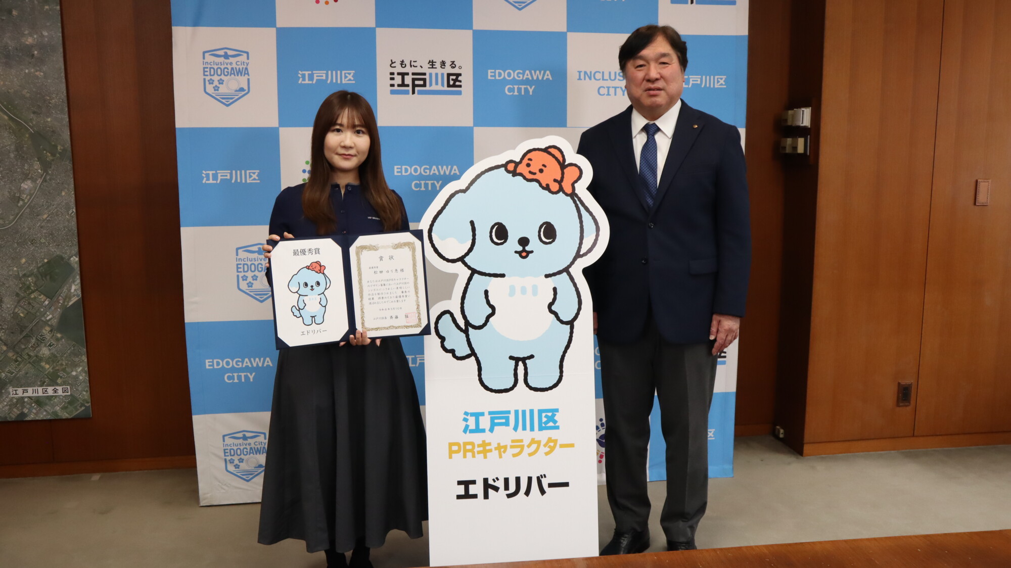 江戸川区は区の魅力を区内外に発信するシンボルキャラクター「江戸川区PRキャラクター」を初制作するにあたって、昨年、キャラクターデザインと名称を募集。多数寄せられた応募作品の中から「エドリバー」を最優秀賞に決定し、3月10日(火)、区役所で表彰式を行った。