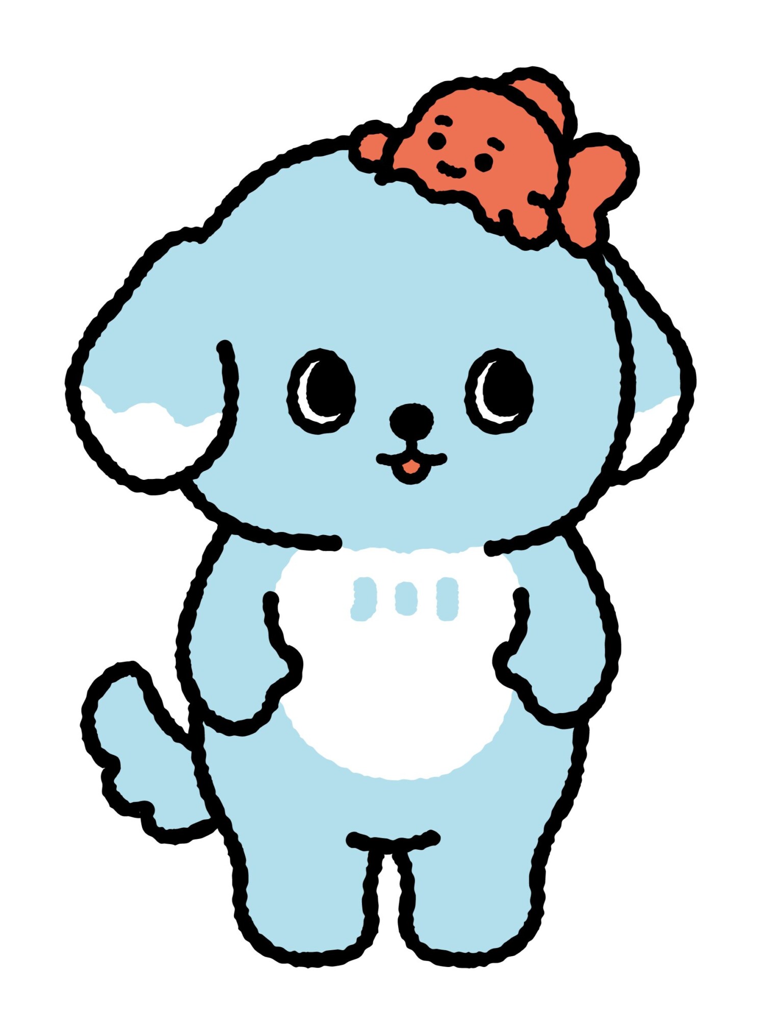 体は江戸川を思わせる水色、頭には親友の赤い金魚が乗っている。「江戸川は、私も幼い頃によく散歩しましたが、いつもたくさんの人が、わんちゃんを散歩させながら楽しそうに歩いていました。その光景が元になり、区の名産である金魚と合わせてデザインしました」と笑顔で話した。