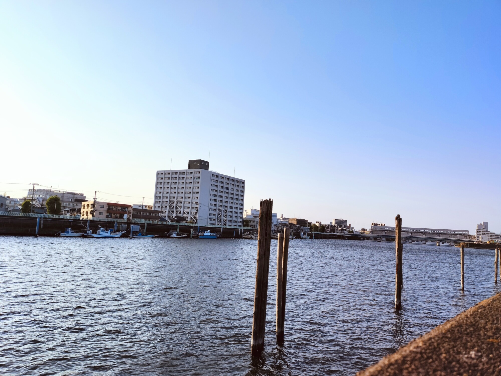 すっきりと晴れ渡る空と、おだやかに流れる水を見ながらてくてく歩いていると、とても気持ちがいいです 。