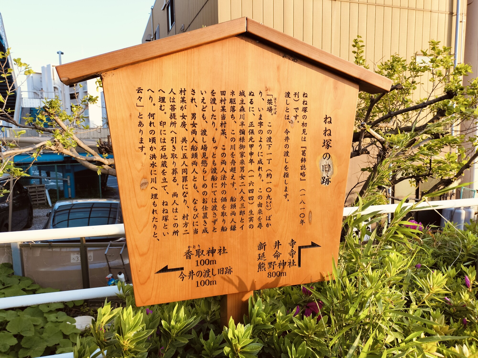「ねね塚」「今井の渡し旧跡」の2つの説明文を読むと、かつての悲しい歴史を知ることができます 。