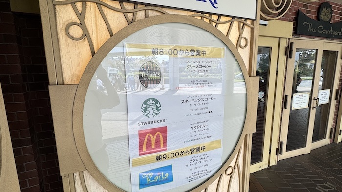そのまま進まず、横にある下へ降りる階段(またはエレベーター)を利用します。下に降りると、8時から入れる入口があり、スタバやマクドナルドは営業しています。