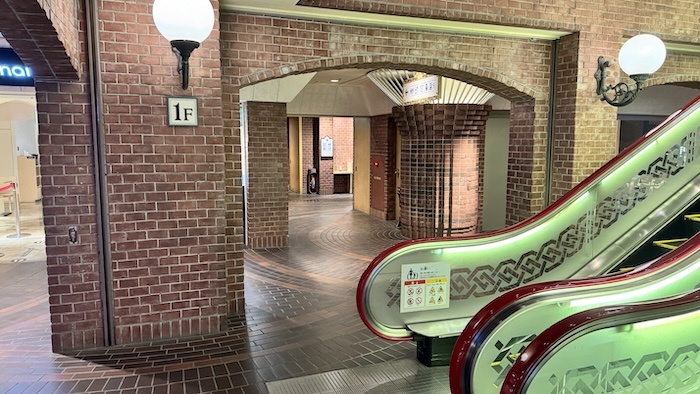 施設内に入ったらそのまま直進します。途中にエスカレーターがありますが、10時前はフードコート側とあわせて封鎖されています。