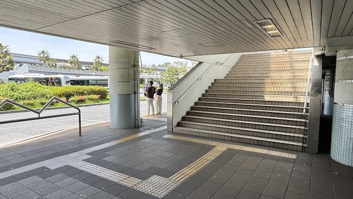舞浜駅南口改札を出たら、正面の階段を下りて地上へ向かいます。
