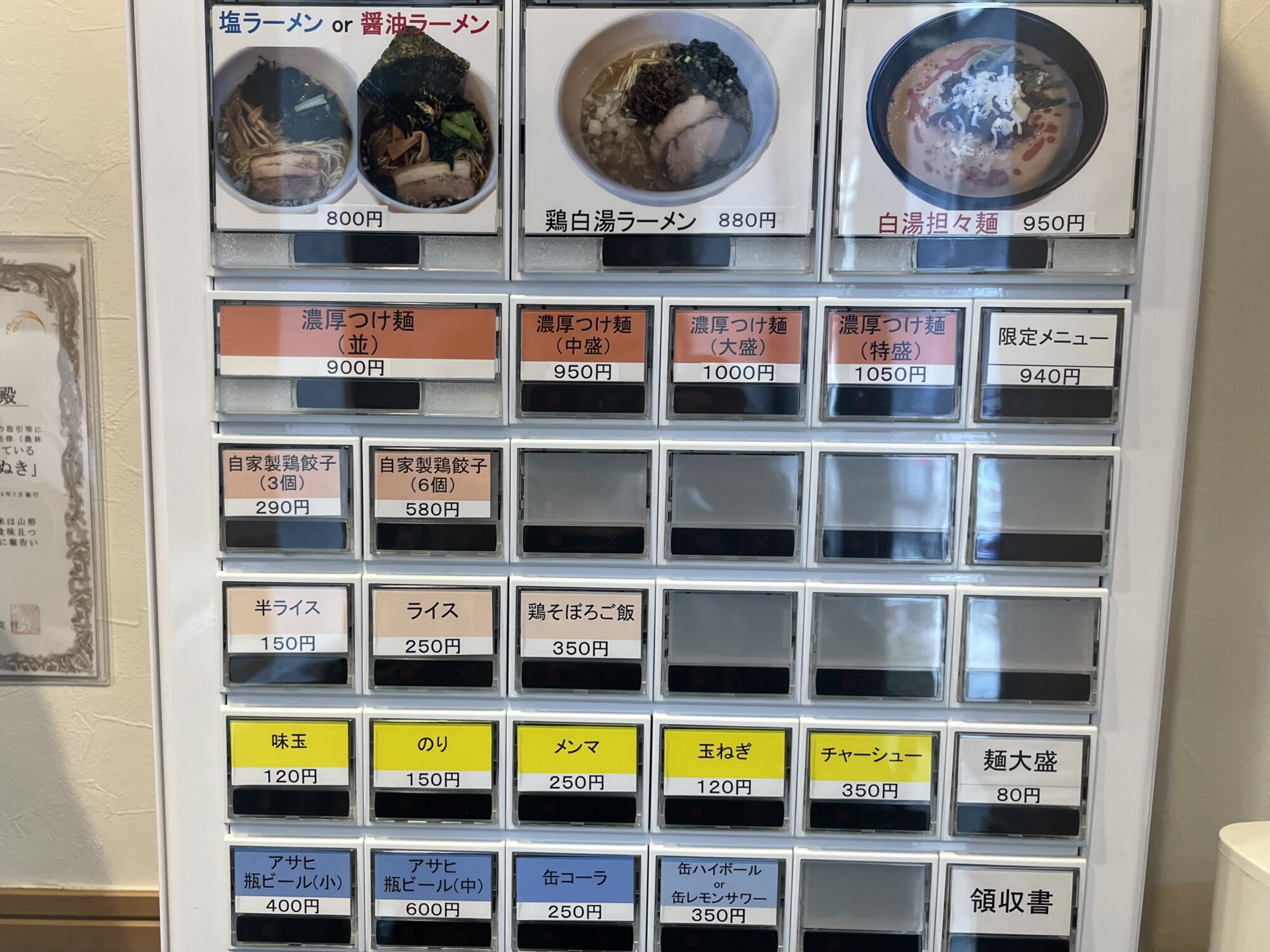 サイドメニューも充実しており、焼餃子・水餃子の2種類や、鶏そぼろご飯などが楽しめます。