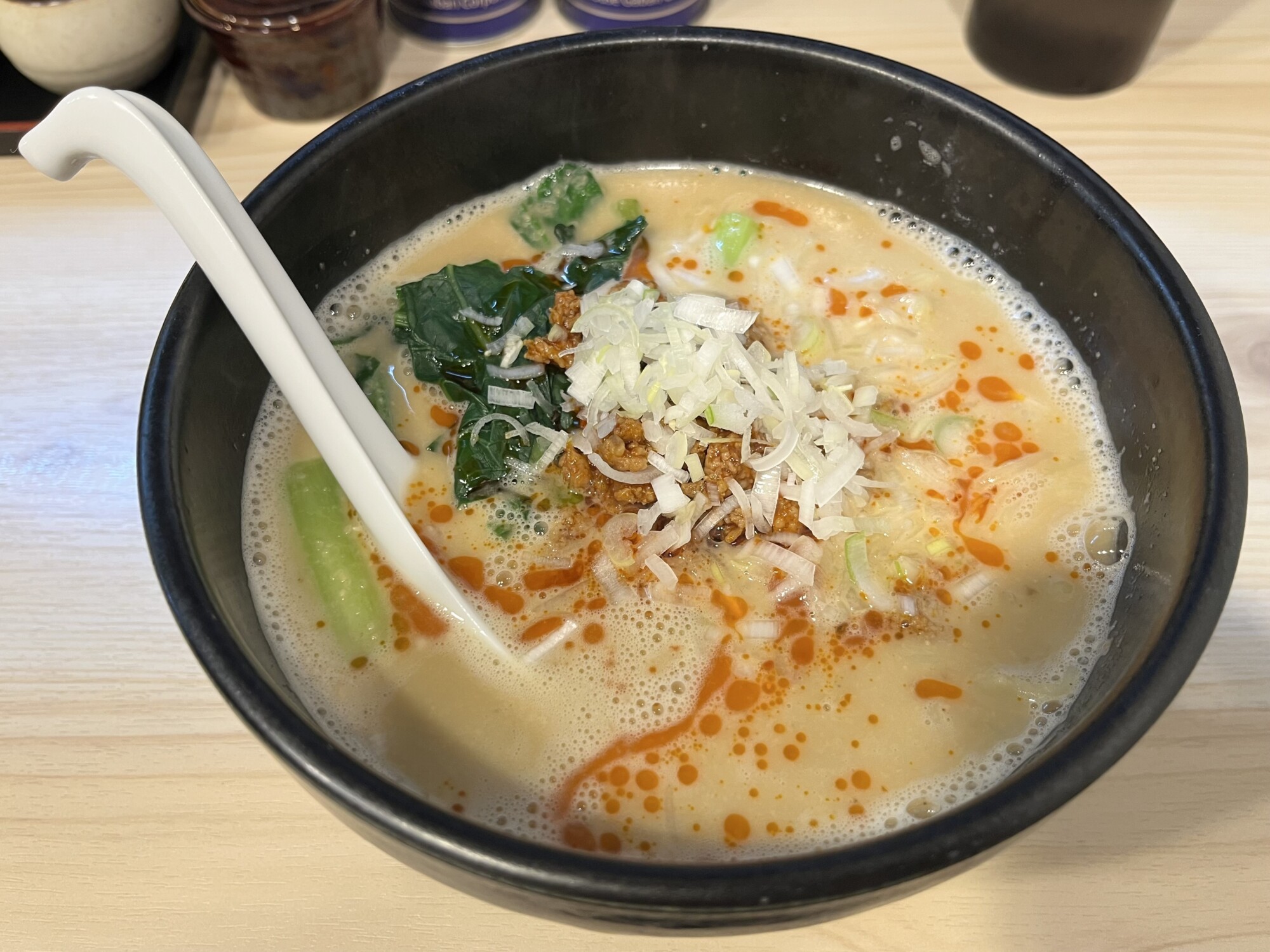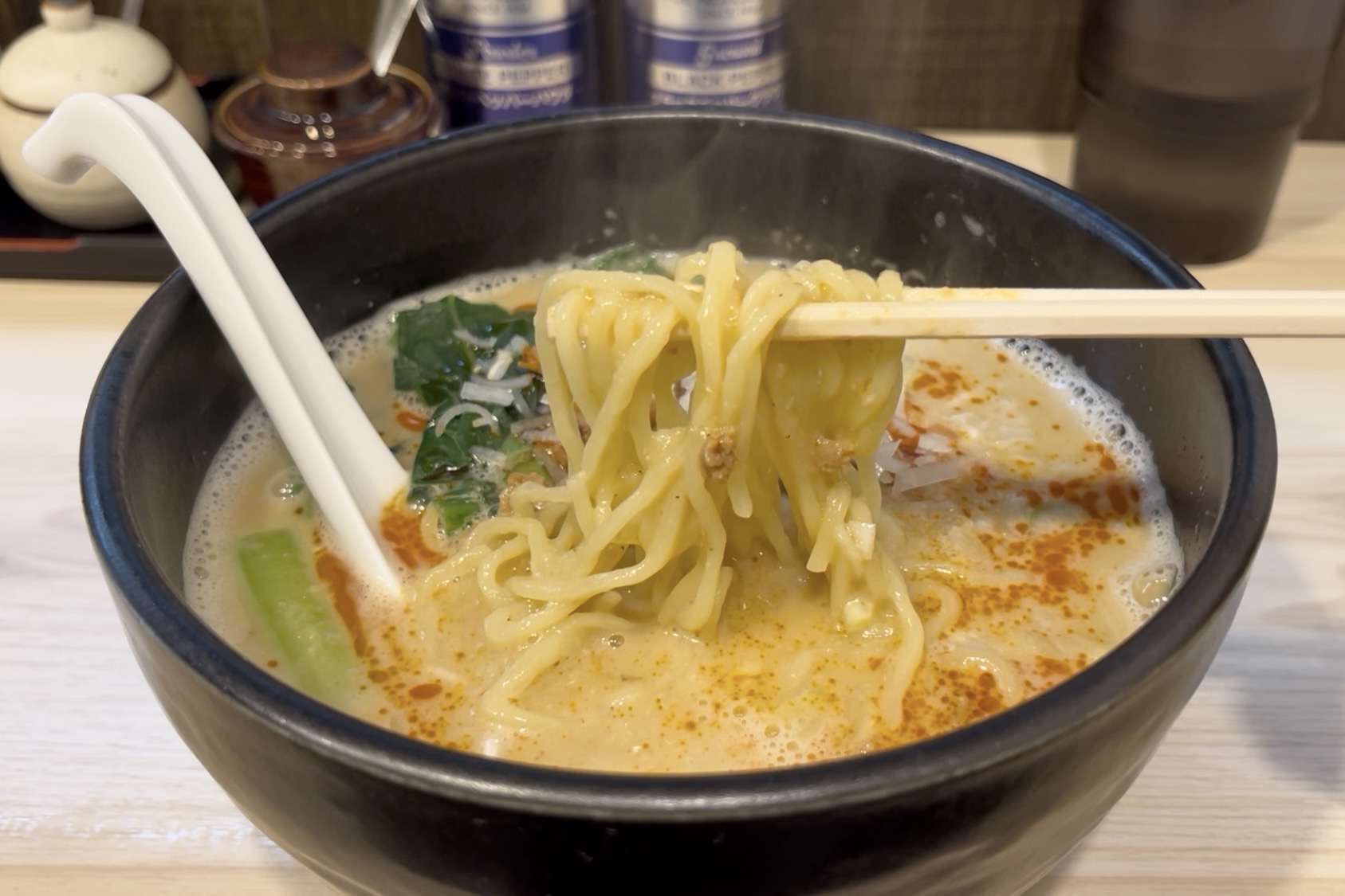 濃厚な鶏白湯と、担々麺のコクのあるゴマの風味が絶妙にマッチ。
