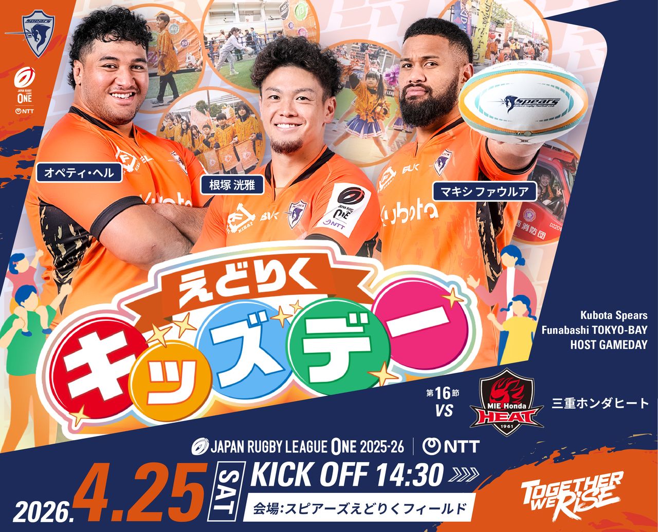 2026年4月25日(土)、ラグビーチーム「クボタスピアーズ船橋・東京ベイ」のホストゲームに合わせて、親子で一日中楽しめる体験型イベント「えどりくキッズデー」が開催されます。