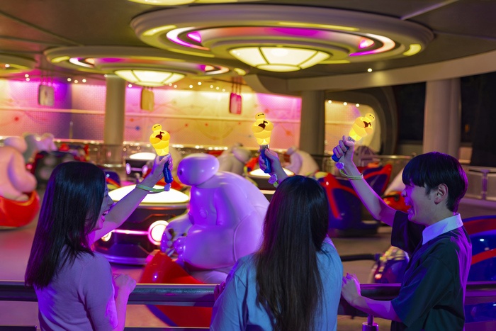 さらに、アトラクション「ベイマックスのハッピーライド」に連動して光るペンライトが登場。アトラクションの周りで光の変化と一体感を感じて盛り上がること間違いなし!