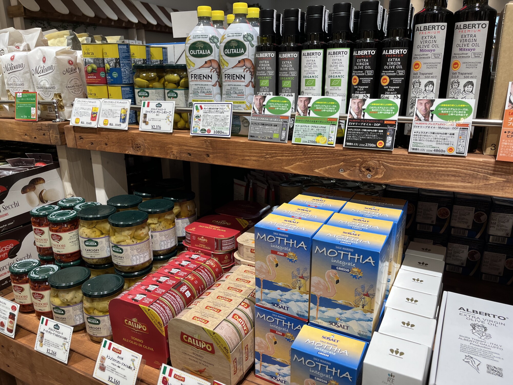 注目ポイント:学校給食の食材を長年扱ってきた実績を活かした、安心・安全なイタリア厳選食材が並びます。