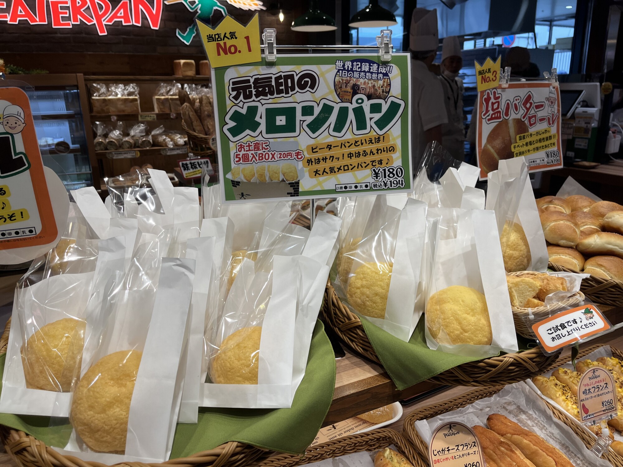 おすすめ商品:1日9,749個の販売記録を持つ「元気印のメロンパン」。