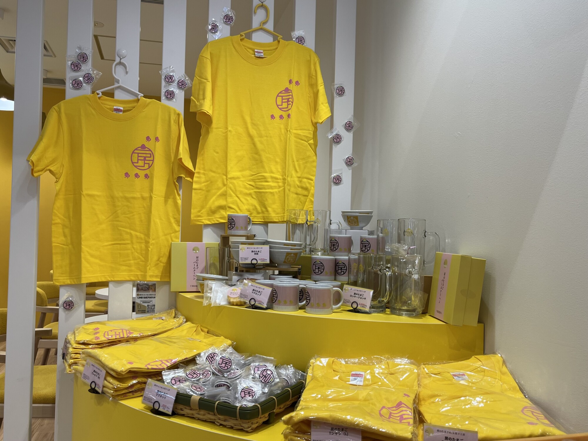 注目ポイント:たまごをイメージしたやさしい色合いの店内。イートインスペースのほか、ライブキッチンでお菓子作りの様子を間近で見学できます。