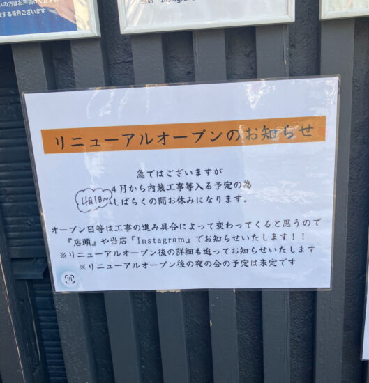 店内はカウンターのみ、キャッシュレス決済の券売機で先に食券購入。4月から店内改装あるようで暫くお休みの様です。